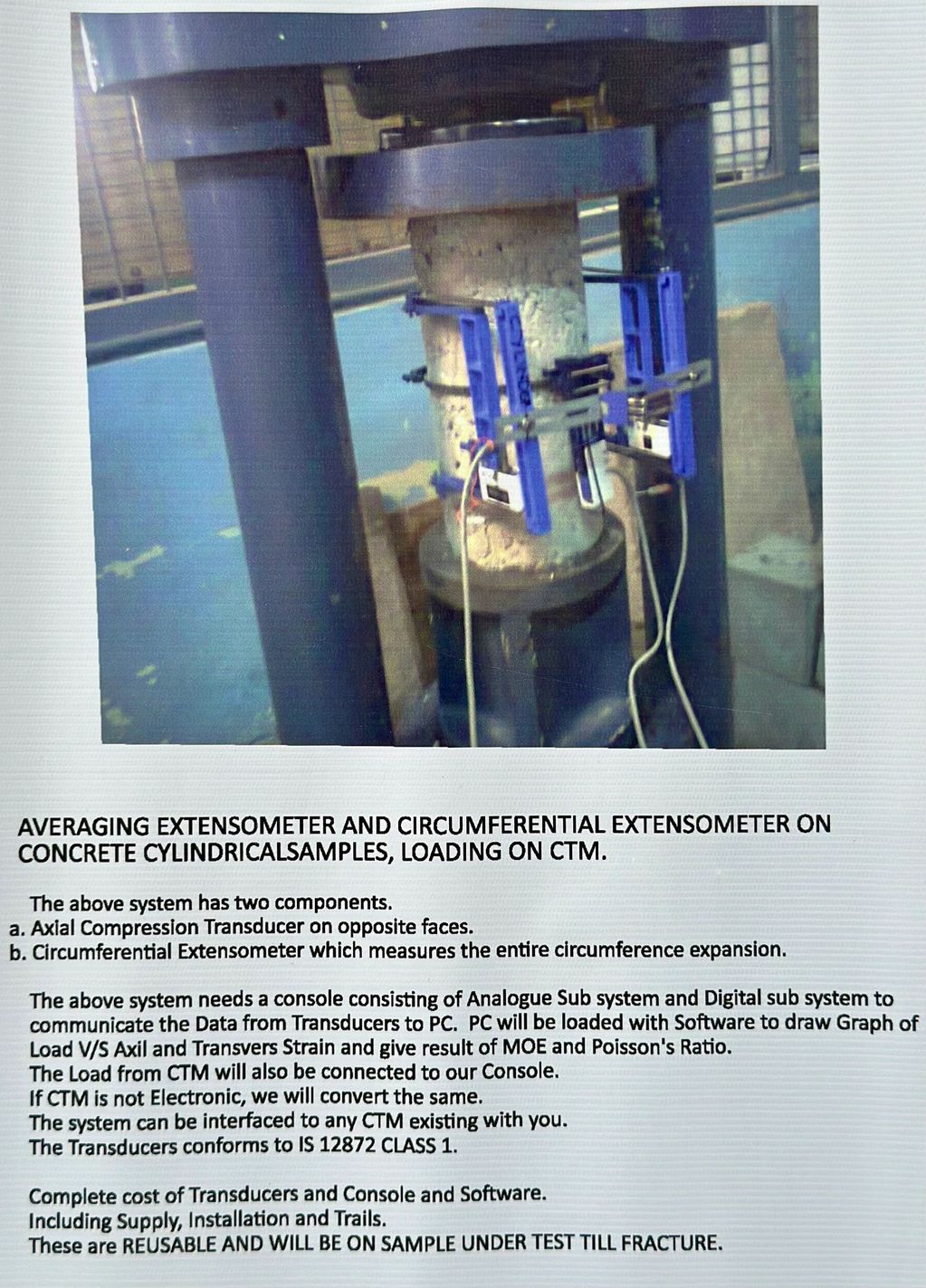 Averaging & Circumferential Extensometer on Concrete Cylindrical samples loading on CTM